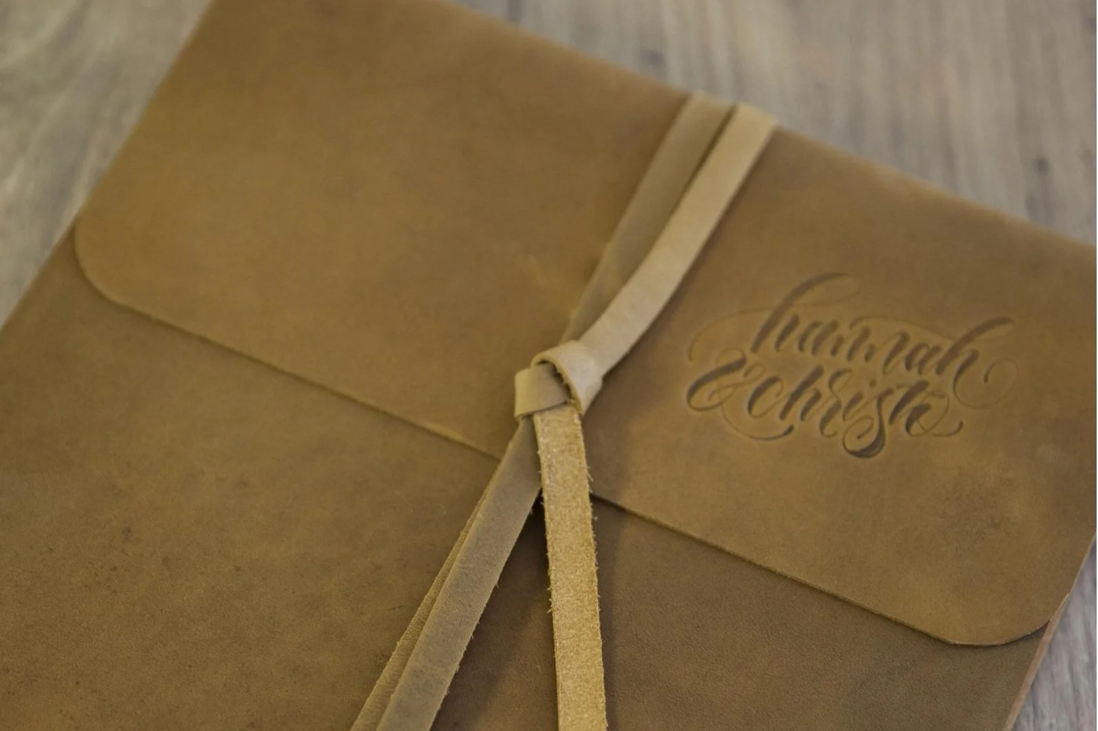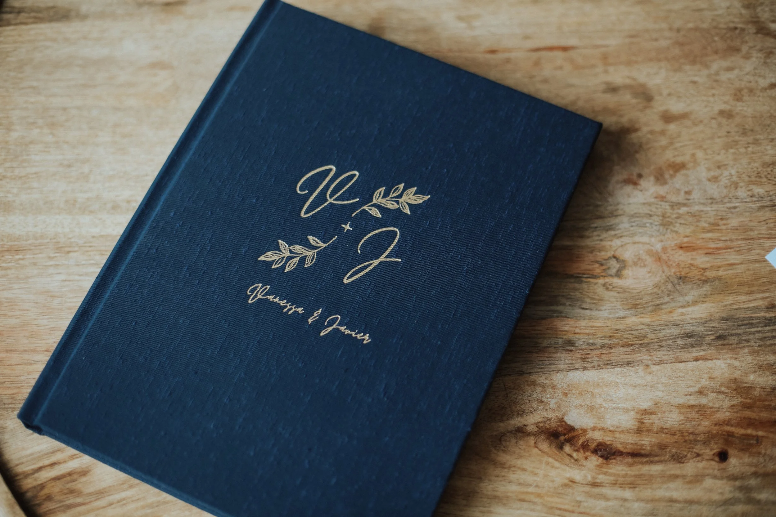 We offer a wide range of debossing (text stamped into your album) foils, which can be placed anywhere on the covers and spine of your album. There is also a range of stunning boxes and slipcases, to keep your album in pristine condition. See below for much more information!